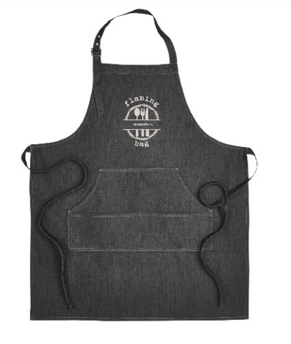 Wear our distinctive Flaming Bag apron when you’re cooking.